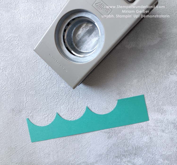 Die Wellen könnt ihr auch mit kleinen runden Handstanzen basteln, wenn ihr die Stanzform nicht habt.