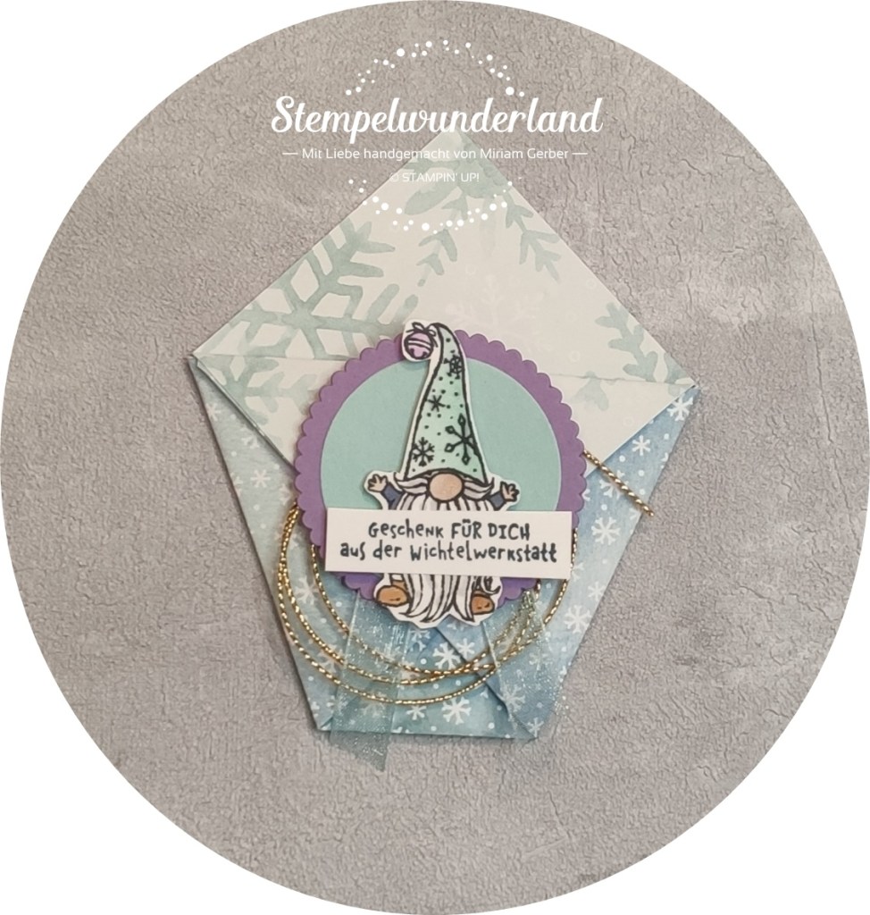Die dritte Idee ist ein Goodie mit dem zuckersüßen Stempelset Wichtelweihnacht. Ich glaube es war Liebe auf den ersten Blick als ich den Katalog durchgeblättert habe.