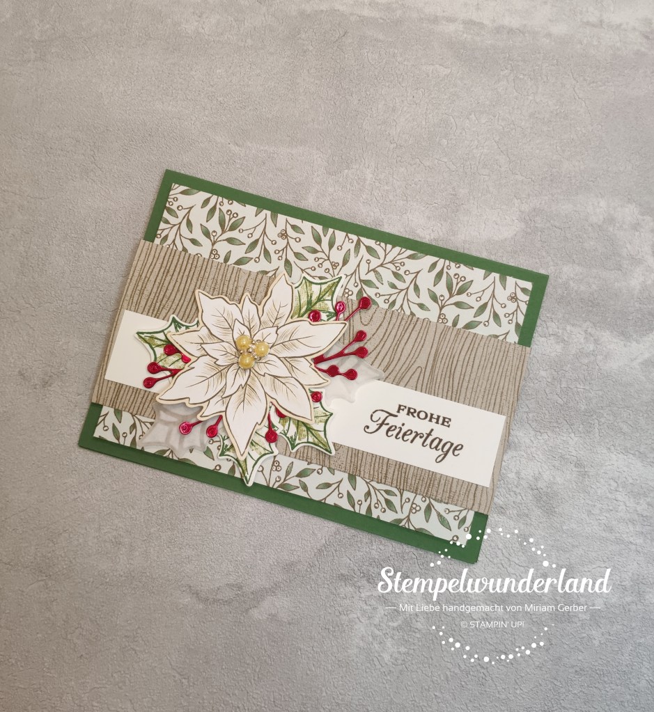 Heute zeige ich euch eine Karte mit dem wunderschönen Designerpapier Weihnachtsblüten und dem passenden Produktpaket Blühende Weihnachten.