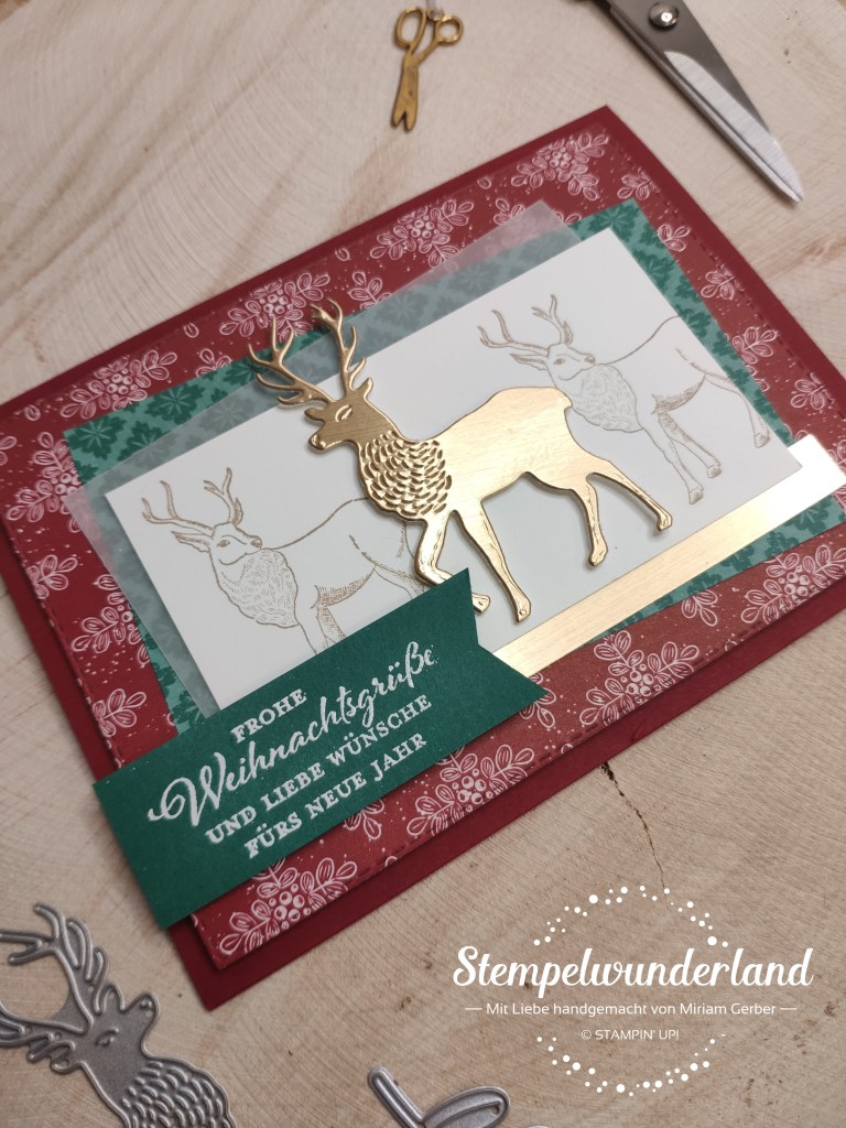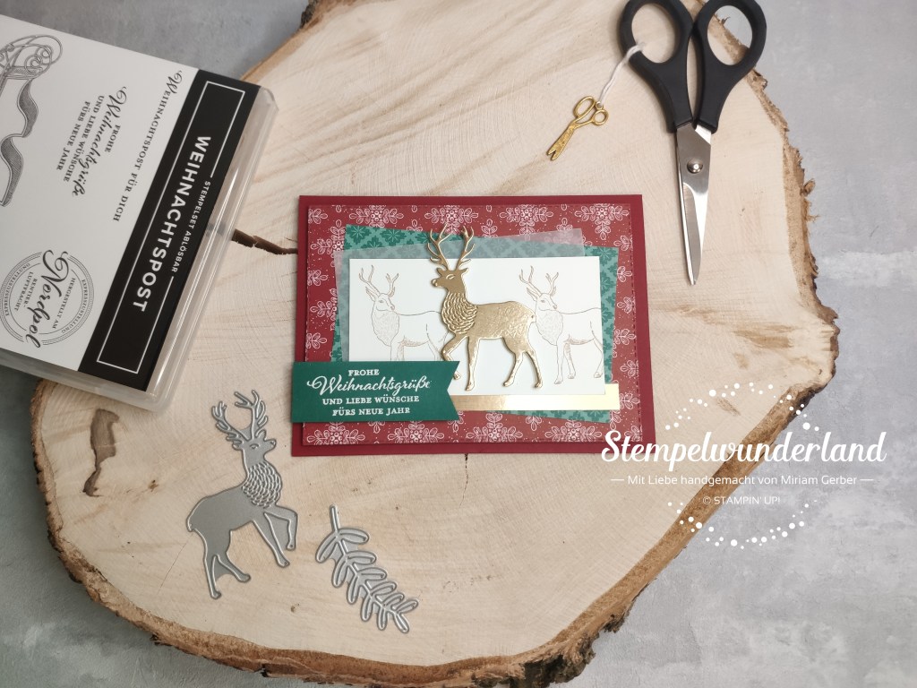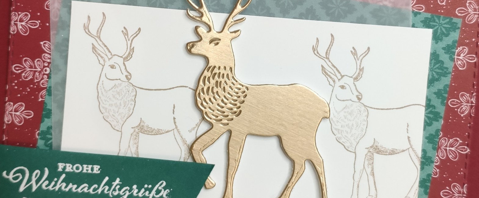 Ich habe mit dem Produktpaket Weihnachtspost eine Karte gestaltet. Besonders der Hirsch hat es mir angetan.