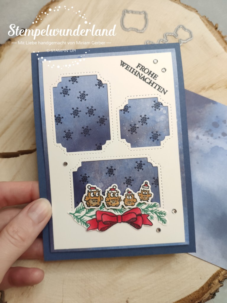 Heute habe ich mir wieder eine Karte überlegt, dieses mal prägend gestaltet mit dem Produktpaket Eulenfest.