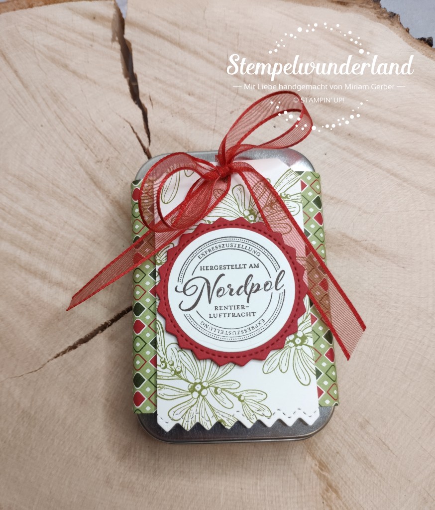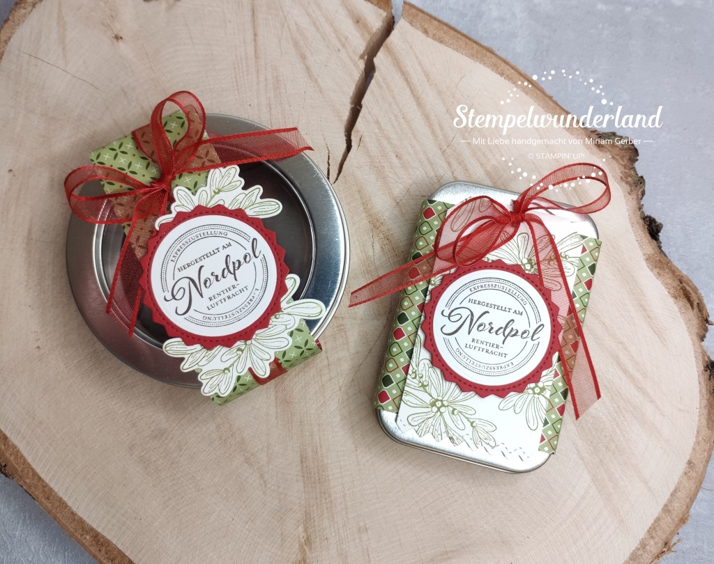 Dafür habe ich eine runde und eine eckige Blechdose aus dem aktuellen Herbst- / Winterkatalog (Minikatalog August bis Dezember 2020) verwendet.