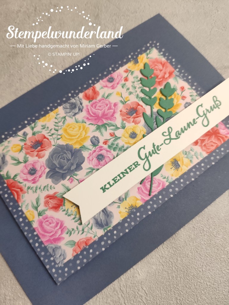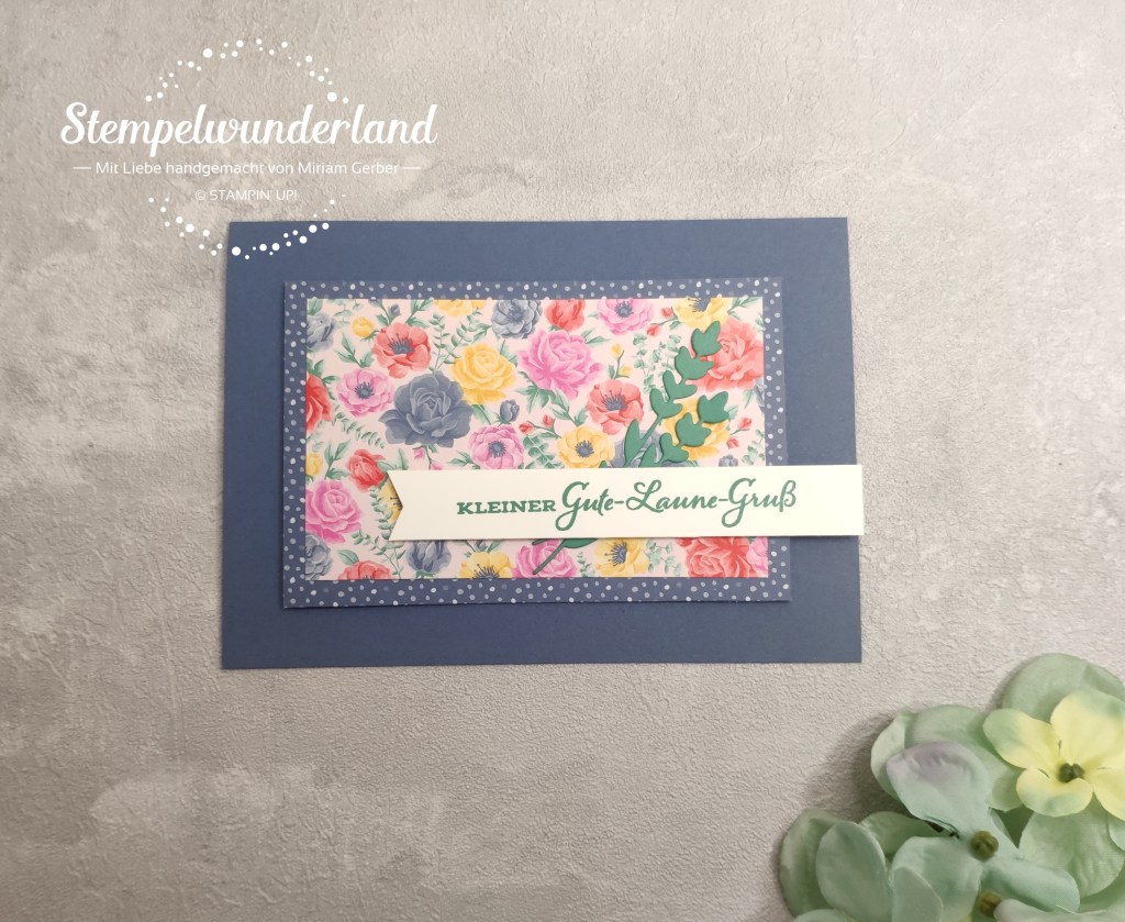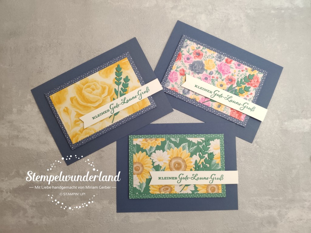 Dafür habe ich das blumige Designerpapier Blumen für jede Jahreszeit verwendet. Das ist soooo schön und macht aus jeder Karte einen Hingucker.