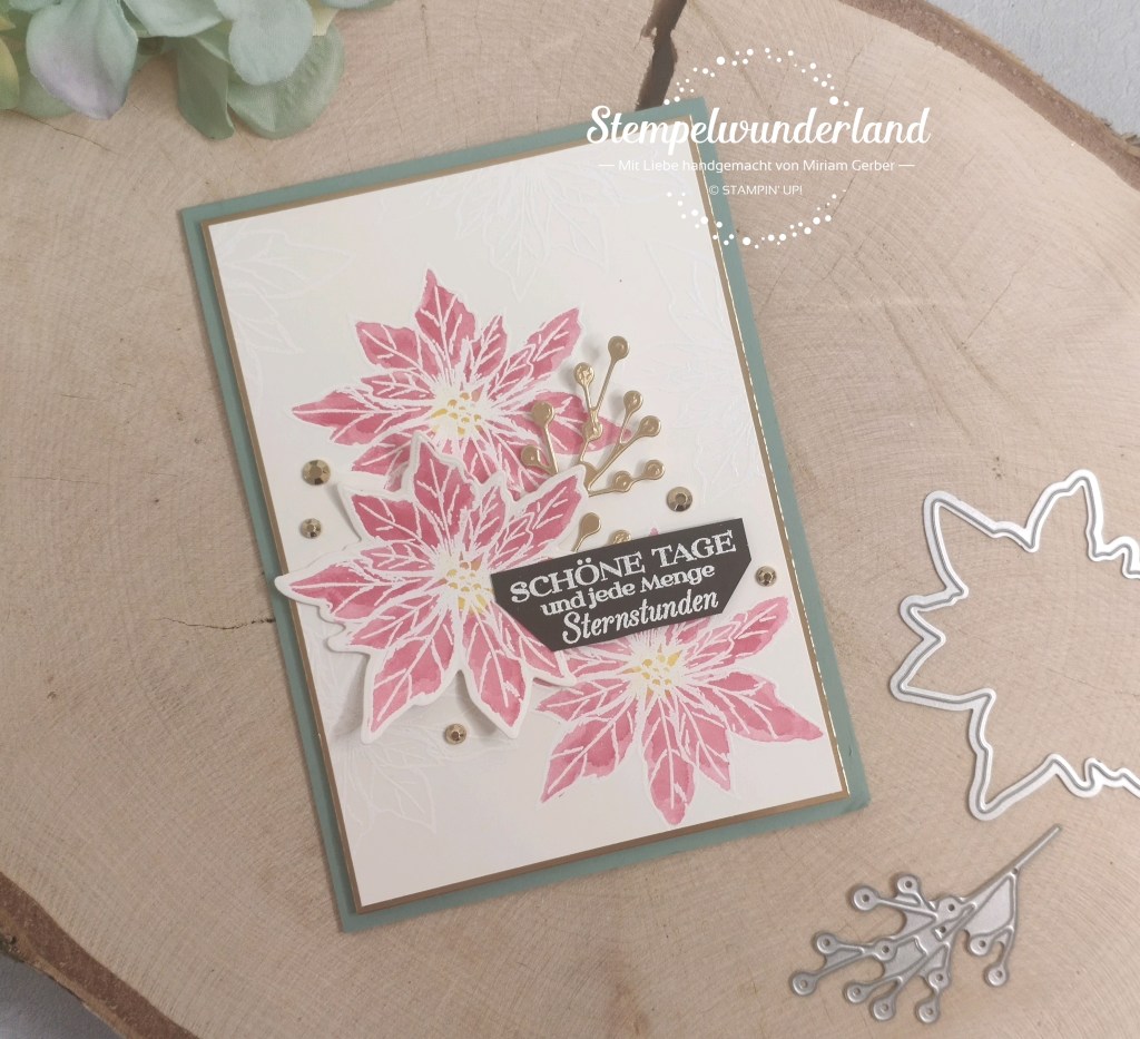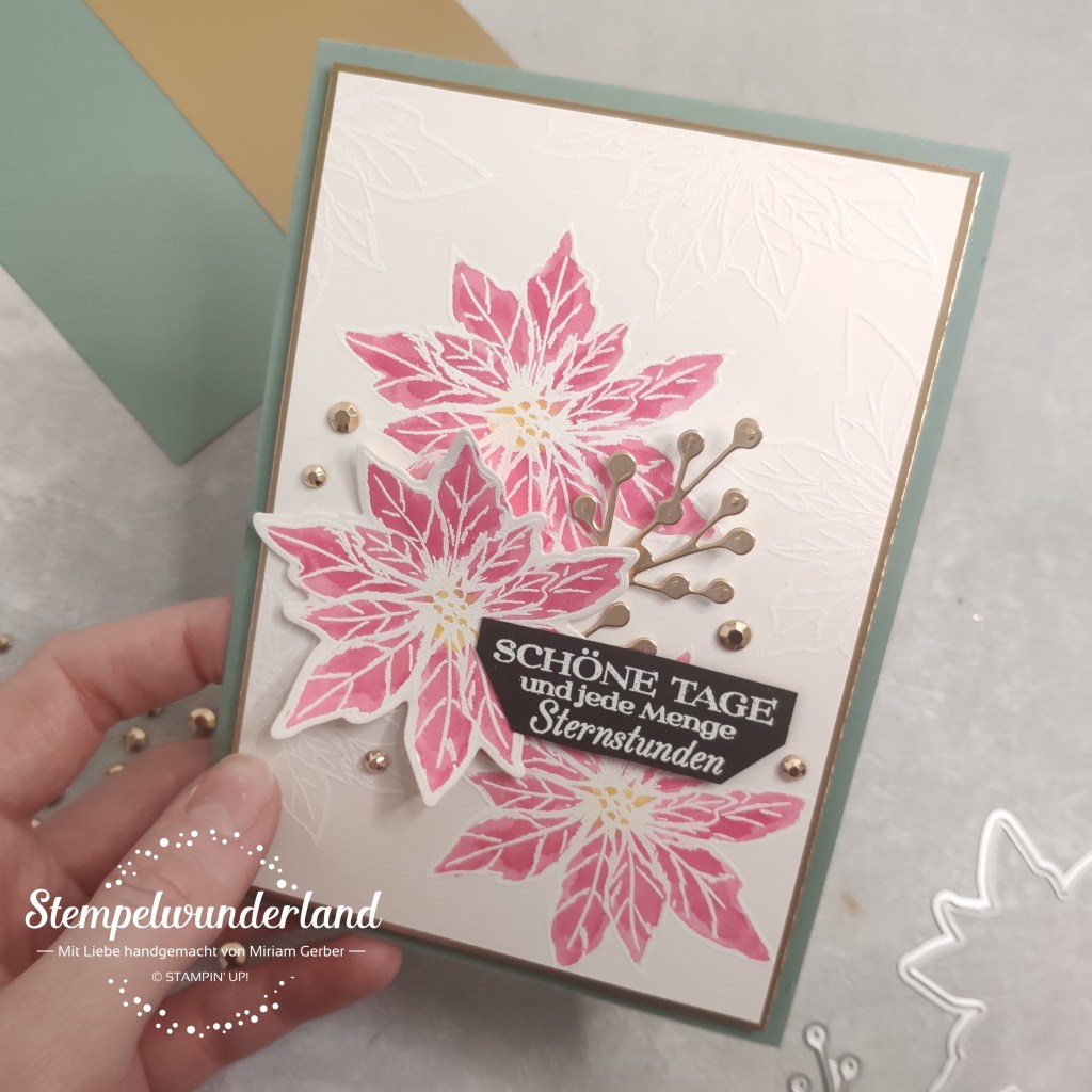 Wir sind schon bei Idee Nr. 15 (wie schnell die Zeit doch vergeht) und ich möchte euch heute eine Karte zeigen, bei der ich den Weihnachtsstern aus dem Stempelset Blühende Weihnachten ganz einfach koloriert habe.