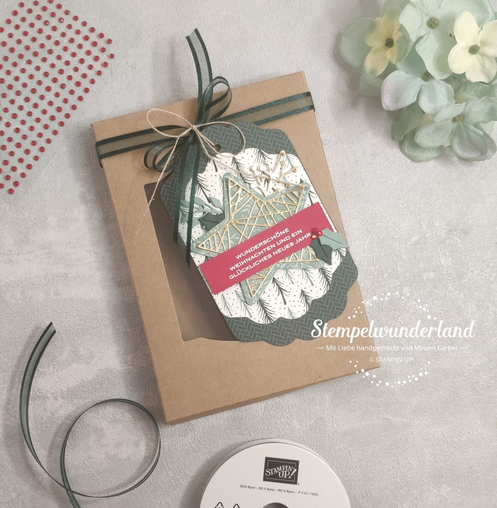 Ich habe euch eine Anhängeridee für eine Geschenkschachtel mitgebracht.