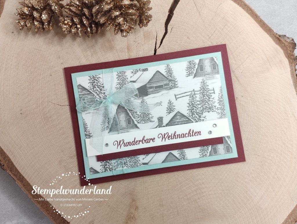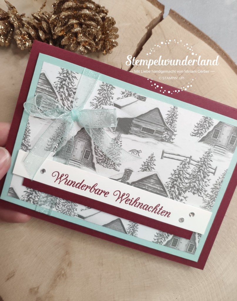 Das wunderschöne zarte Designerpapier mit der Schneelandschaft und dem Fuchs steht im Fokus, aber auch die Farbkombination ist ein Hingucker.