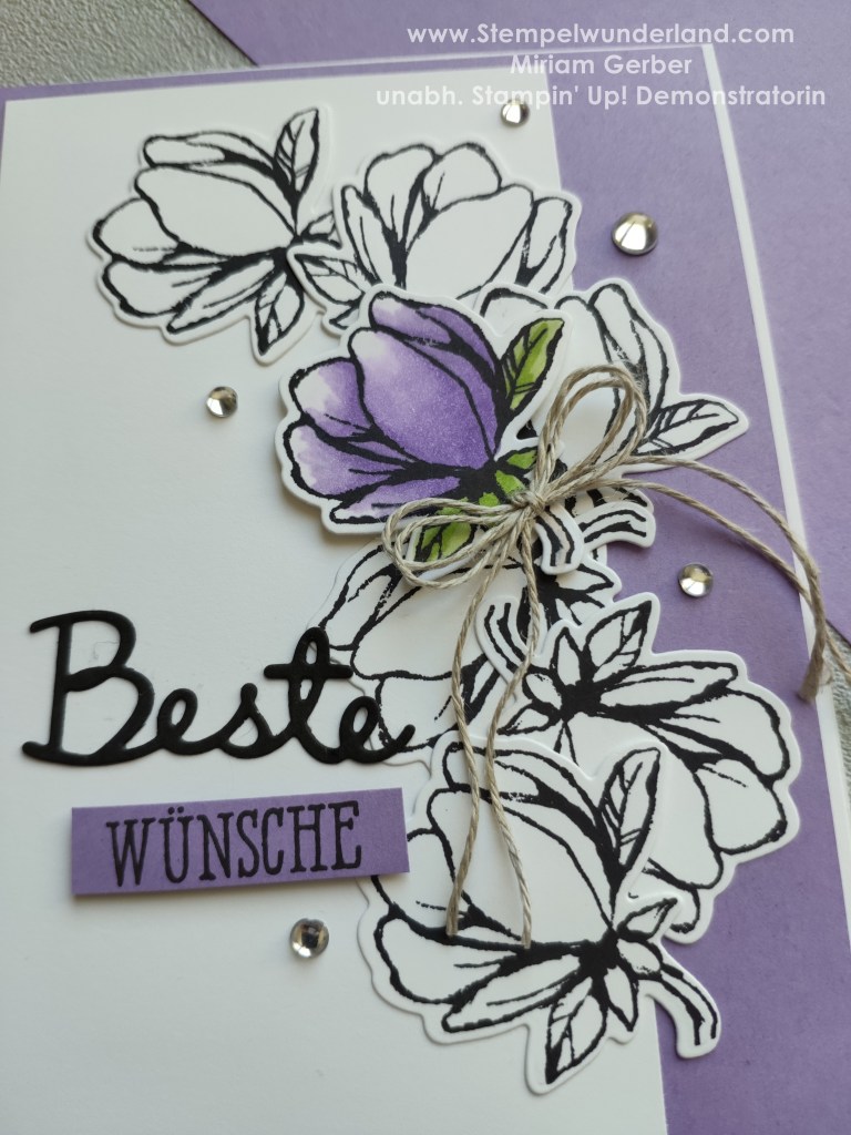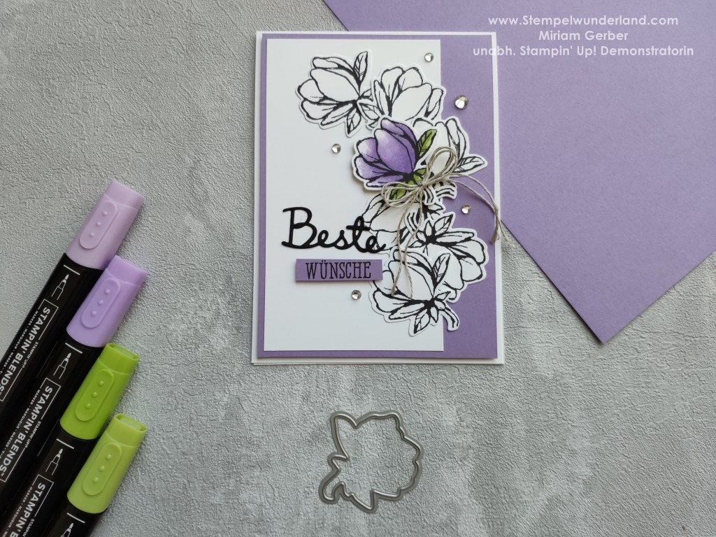Vor nicht allzu langer Zeit sah man überall, in allen Gärten, Magnolien blühen. Das sieht einfach immer zauberhaft aus. Und da wir ein passendes Set im Sortiment haben, kann ich es nicht lassen, damit zu basteln 🙂 und das ist dabei rausgekommen