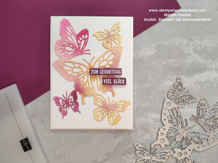 Ihr kennt bestimmt schon die Stanzformen Schöne Schmetterlinge. Anfangs konnte ich mit der Größe der Stanzform nicht so viel anfangen, mittlerweile nutze ich sie aber sehr gerne. Ich werde euch auf alle Fälle noch mehr Projekte damit zeigen.